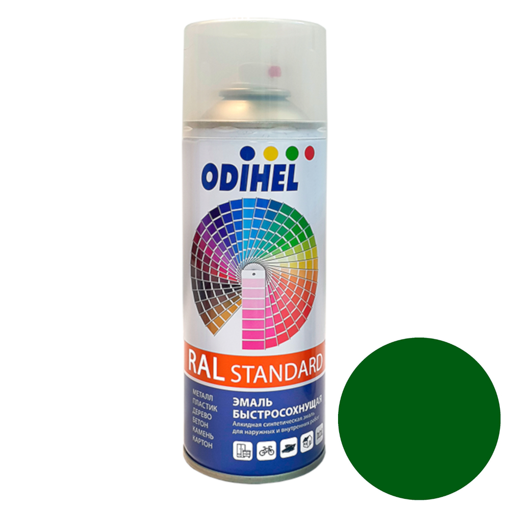 Аэрозоль эмаль алкидная RAL6002 Зеленый (520мл) ODIHEL RAL6002A