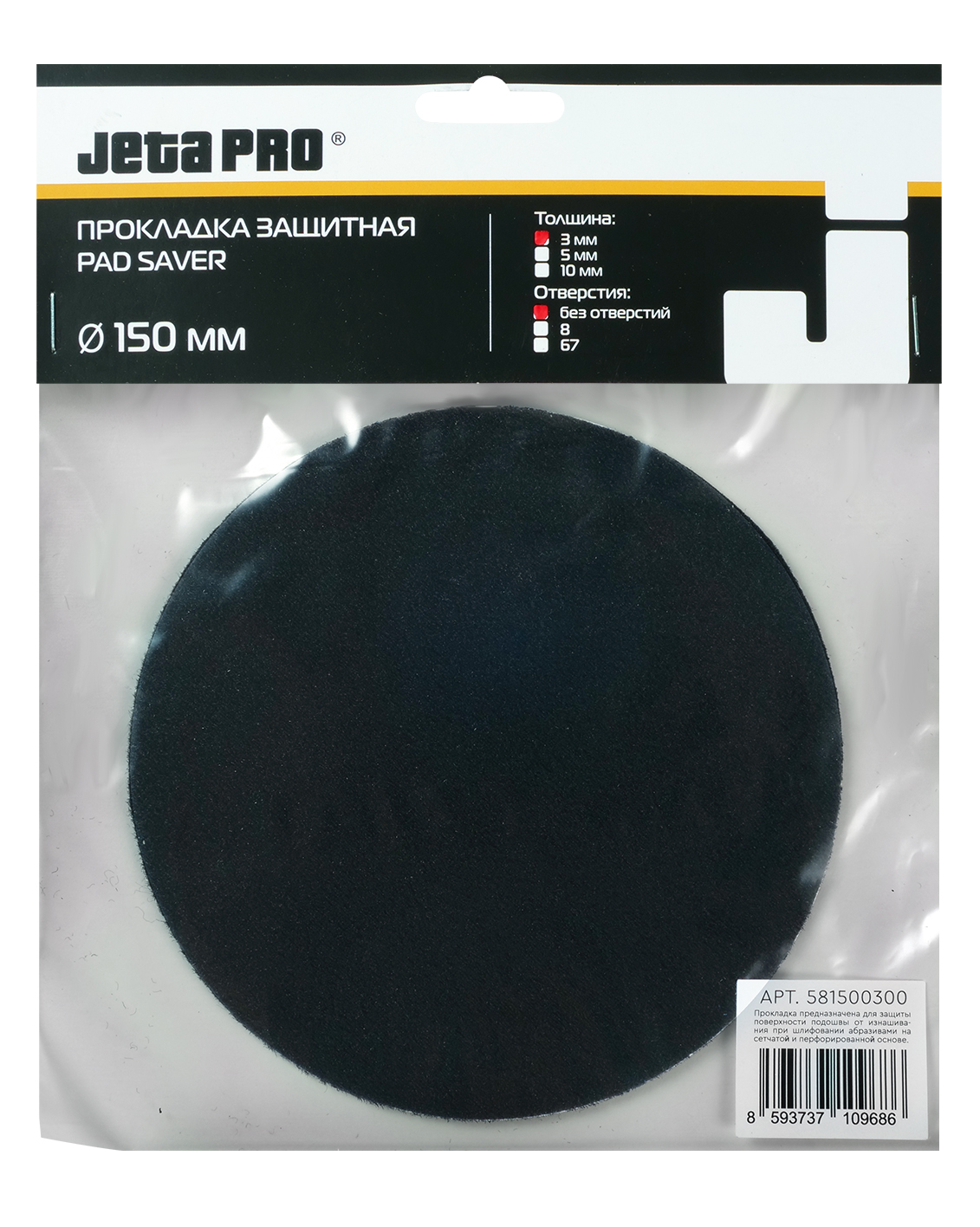 JETAPRO 581500300 Прокладка защитная Ø150мм без отверстий для подошвы Ø150мм ДЖЕТА 581500300