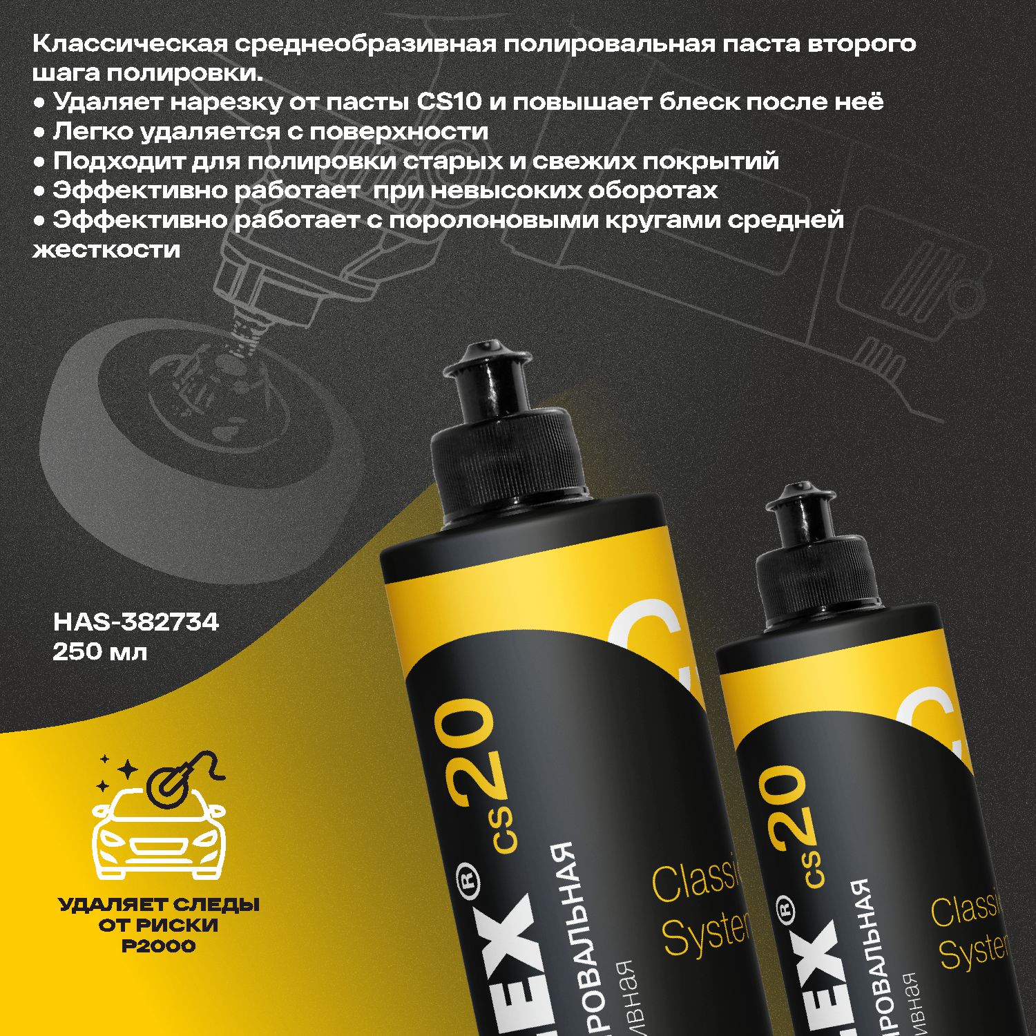 Паста СS20 полировальная среднеабразивная 250мл HAS-382734 ХОЛЕКС