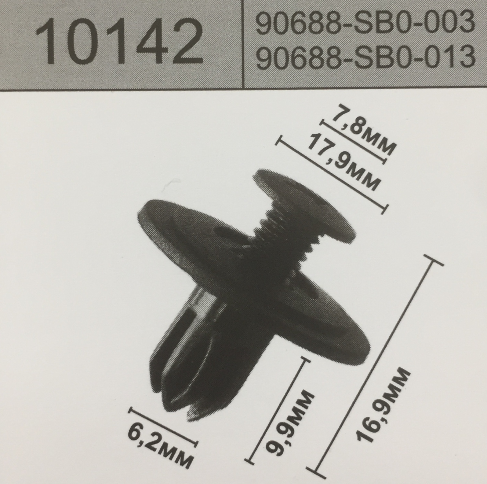 10142 аналог 90688-sb0-003 клипса решетки воздухозаборника, крепления порога ACURA/HONDA акура хонда