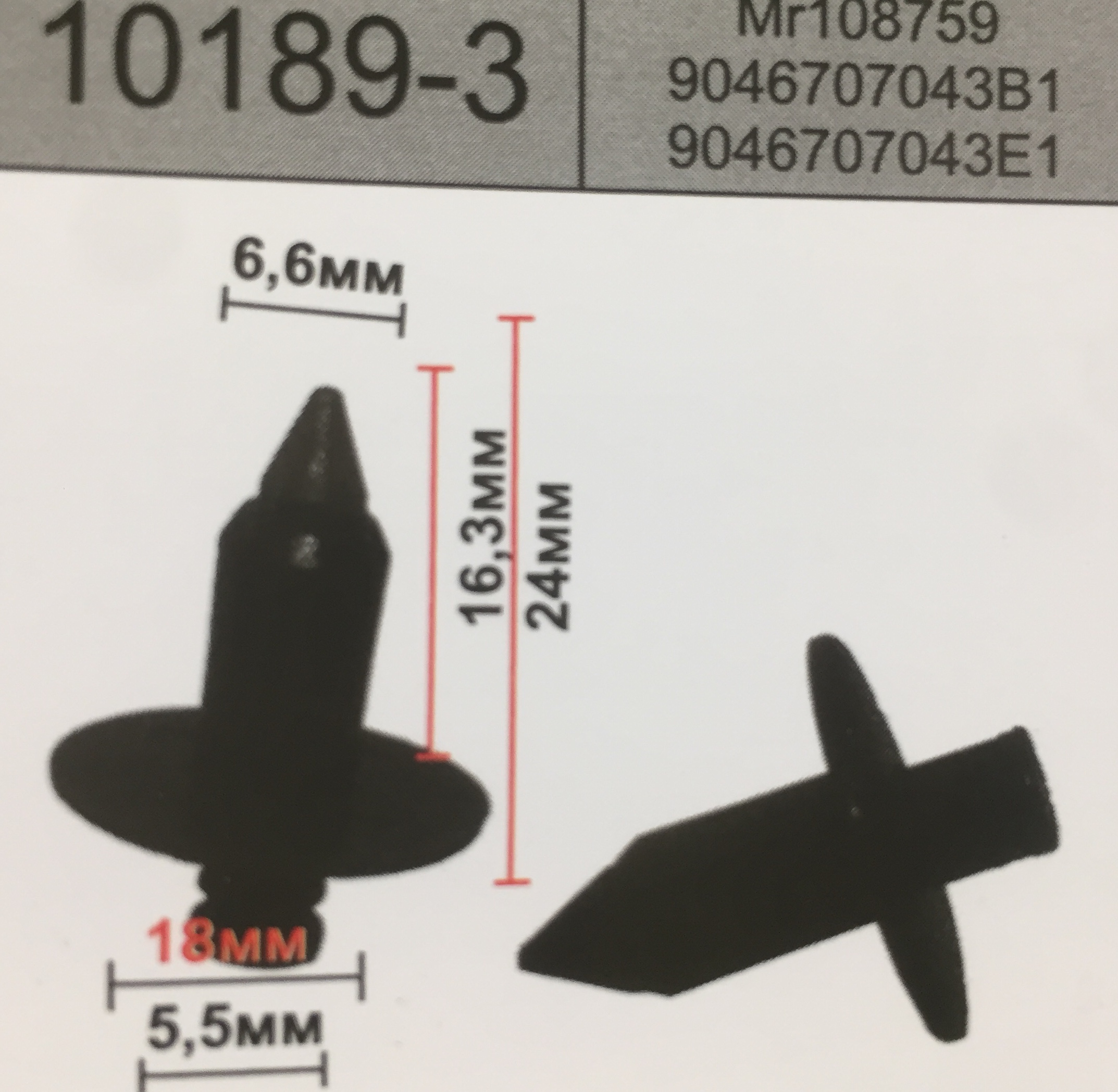 10189-3 клипса серая (MR108759) TOYOTA/NISSAN/MITSUBISHI/SUZUKI-------------РАСПРОДАЖА