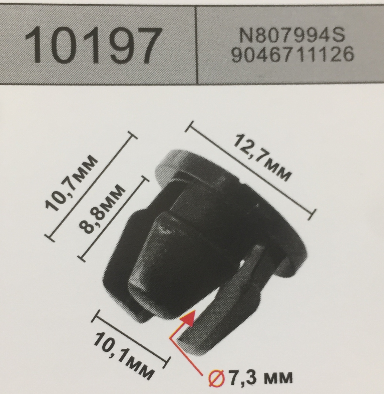 10197 аналог N807994-S клипса крепления решетки, освещения FORD форд