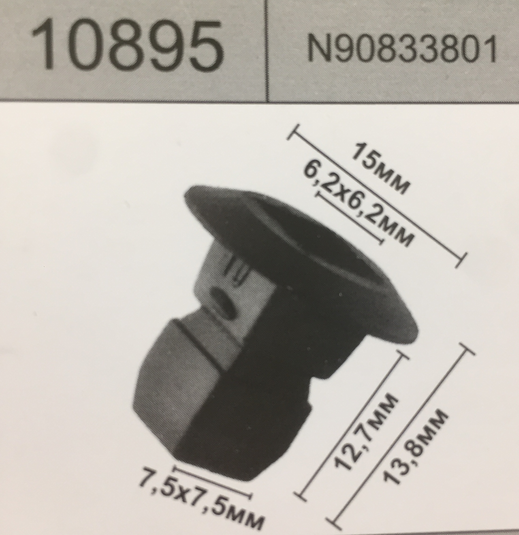 10895 аналог n90833801 клипса распорная переднего подкрылка AUDI ауди