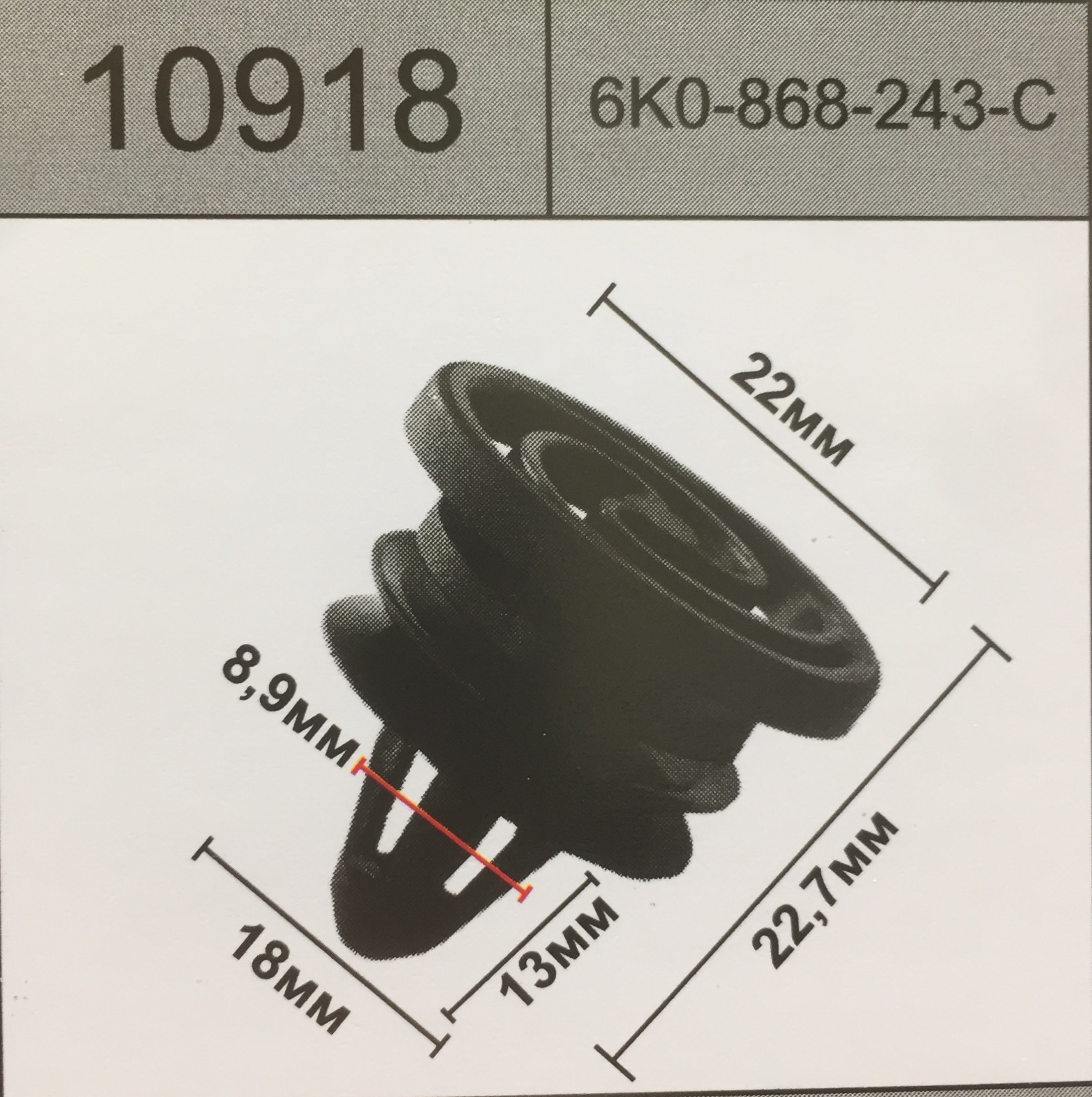 10918 аналог 6K0-868-243-C клипса зажим кнопочный внутренней отделки Volkswagen фольксваген