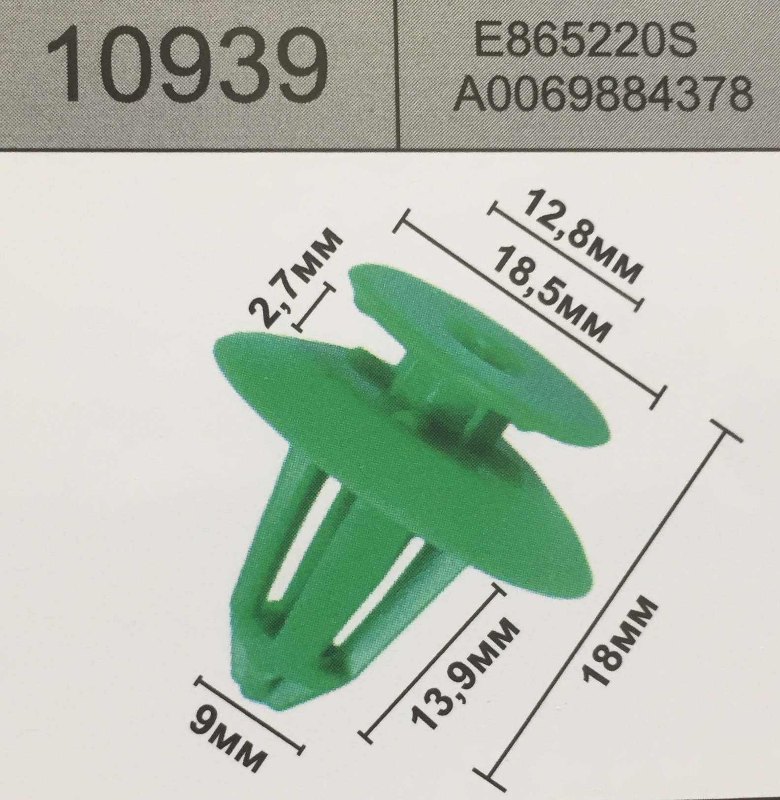 10939 аналог E865220S клипса внутренней отделки зеленая VAG Volkswagen фольксваген