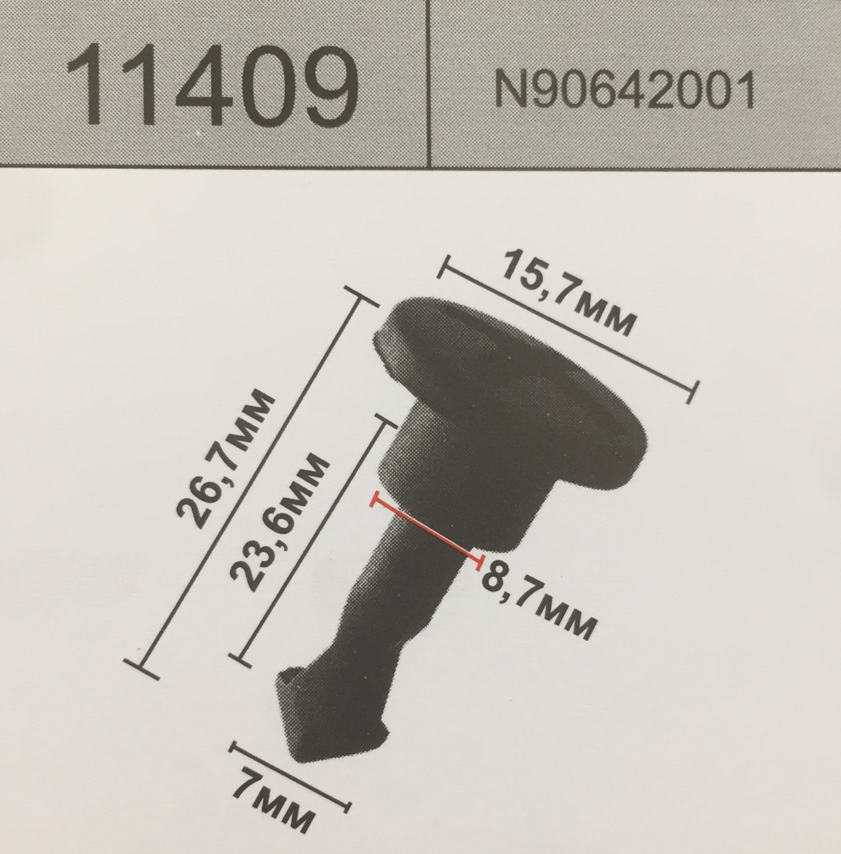 11409 аналог N90642001 клипса запорная цапфа (заглушка кожуха двигателя) Volkswagen фольксваген