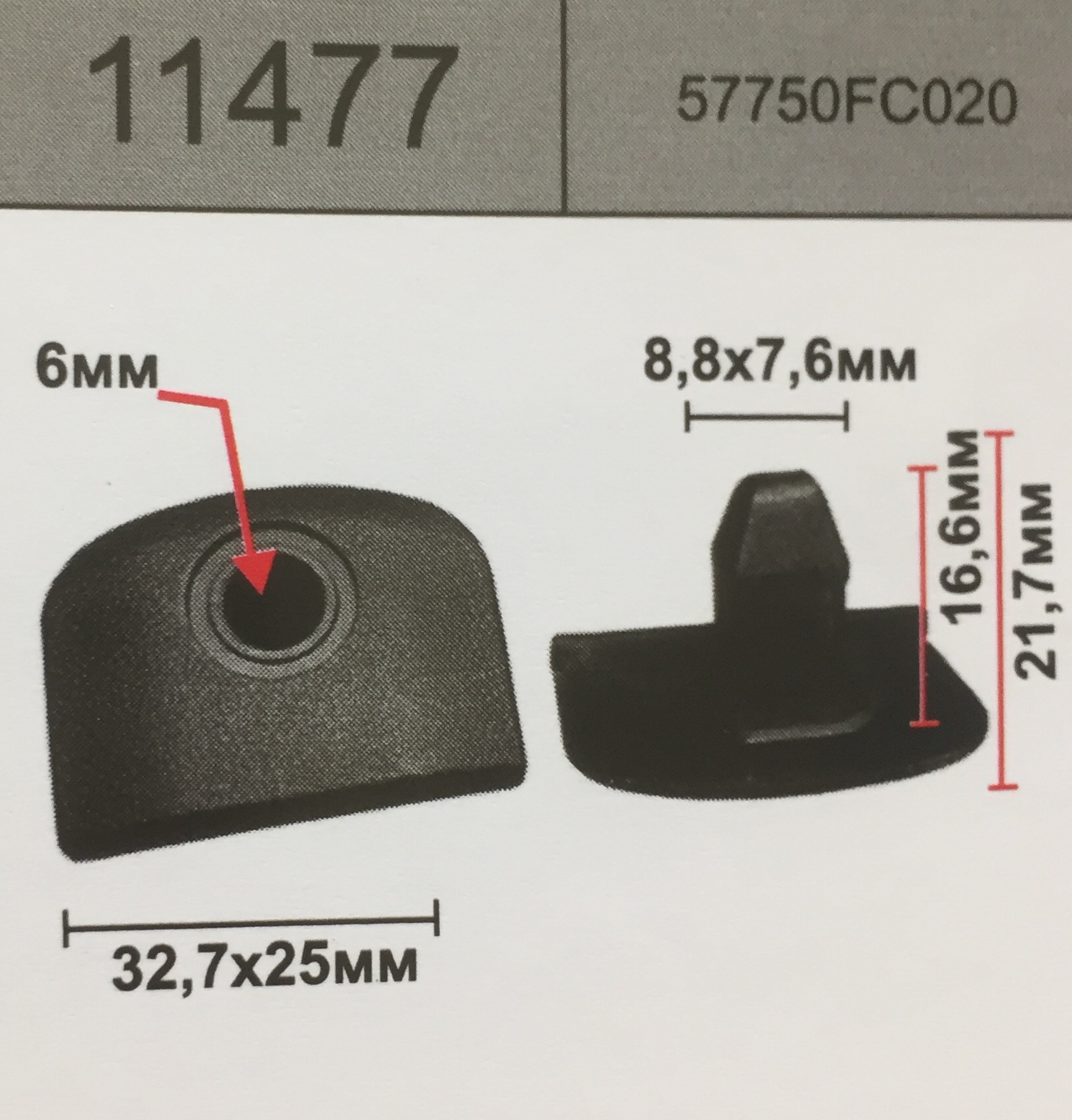 11477 аналог 57750-FC020 клипса крепления бампера SUBARU/SUZUKI/CHEVROLET субару сузуки шевроле