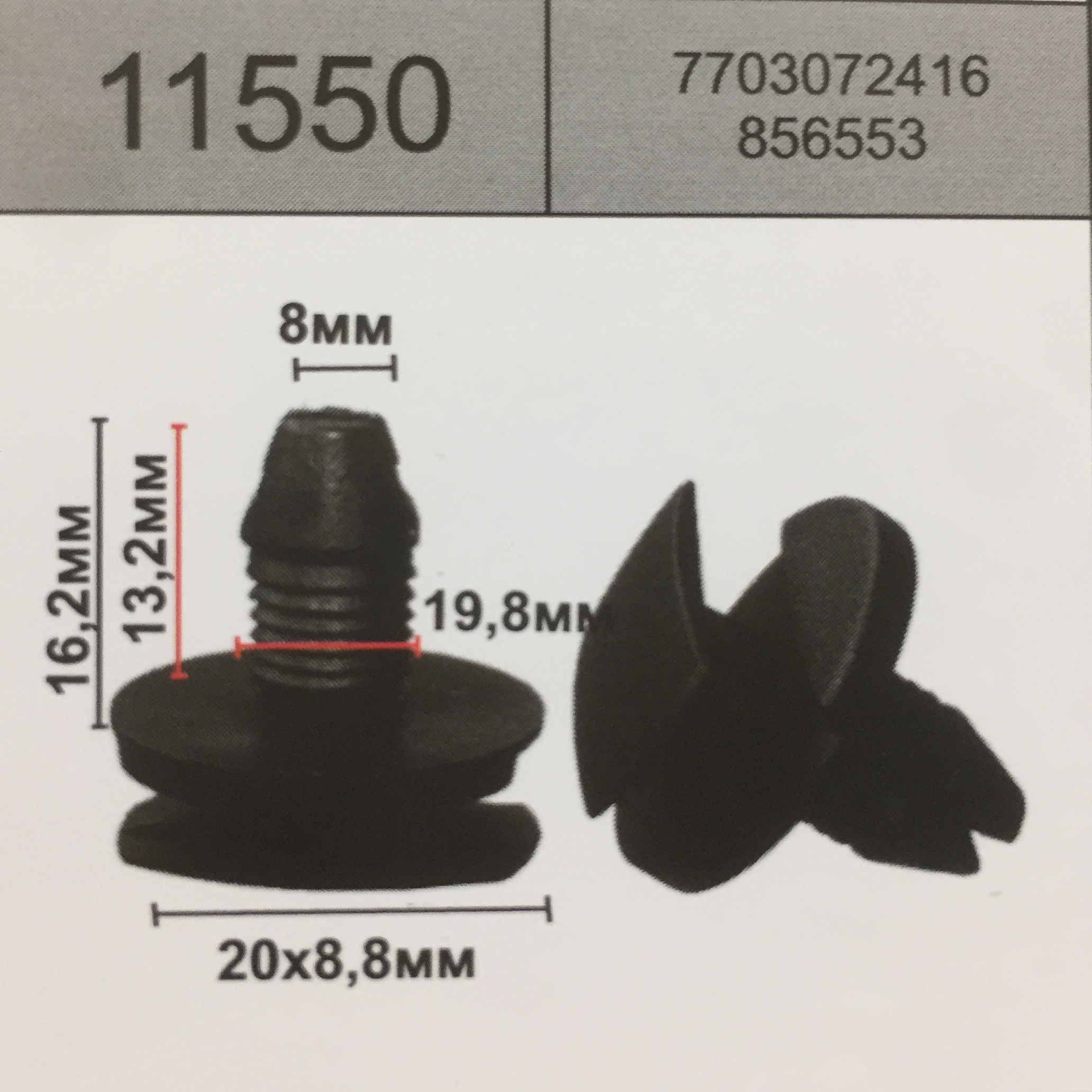 11550 аналог 77 03 072 416 клипса крепления молдинга порогаPEUGEOT/RENAULT/MAZDA/CITROEN пежо/рено/мазда/ситроен