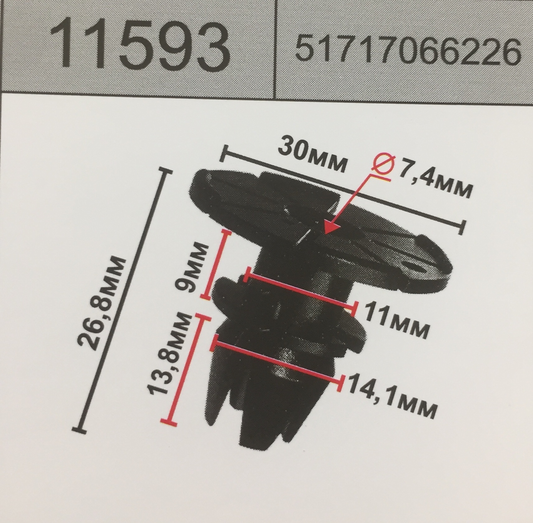 11593 аналог 51717066226 клипса крепления порога BMW бмв