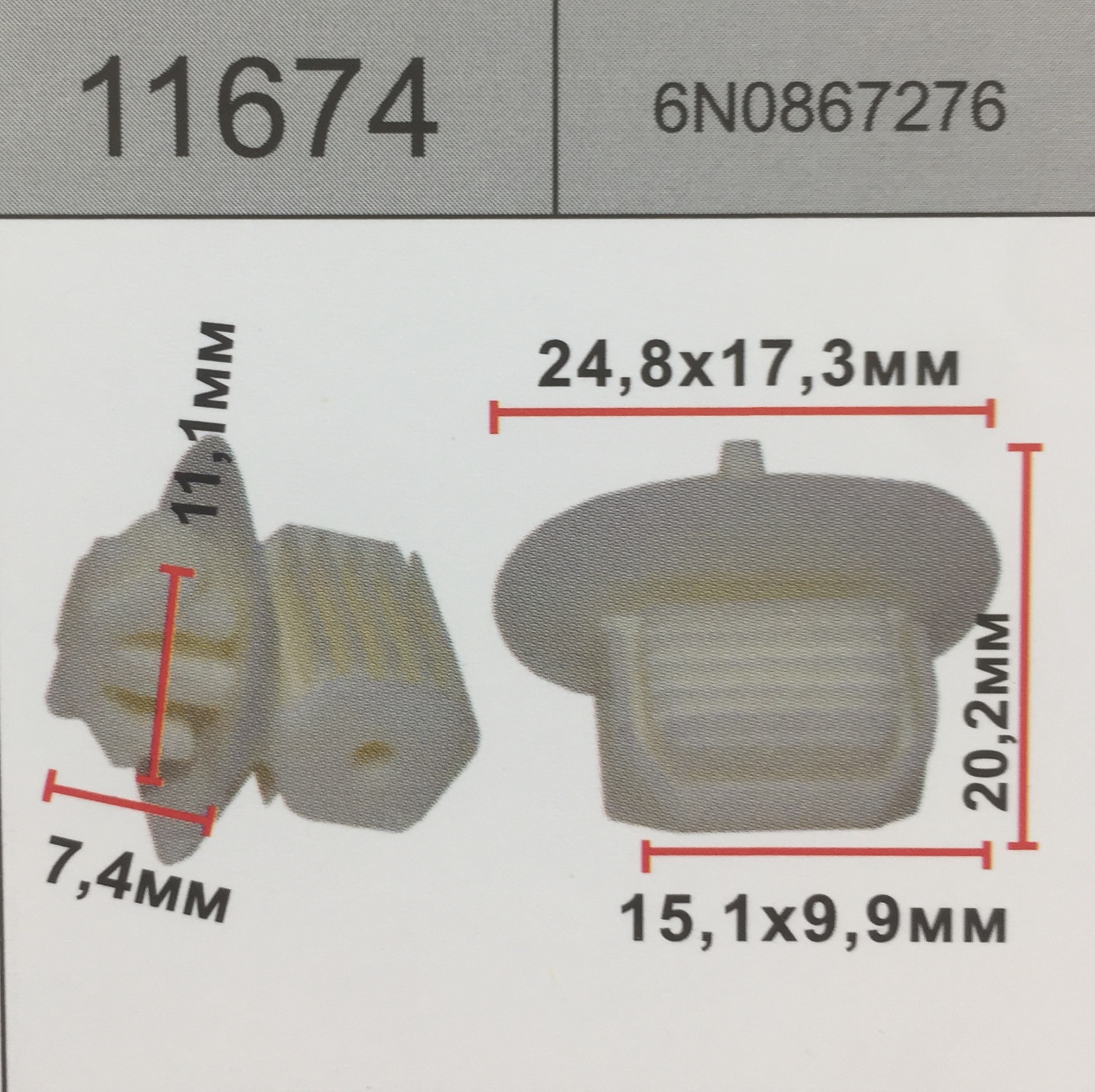 11674 аналог 6N0 867 276 клипса крепления внутренней обшивки двери Volkswagen фольксваген/ауди/шкода/сеат