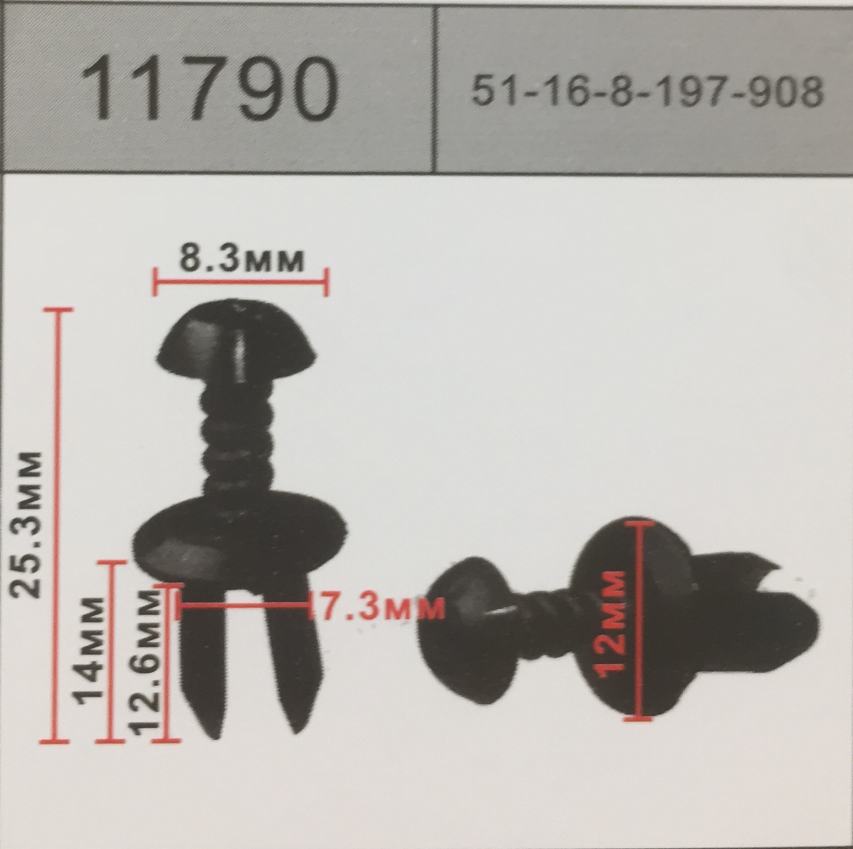 11790 аналог 51-16-8-197-908 клипса заклепка ввинчивающаяся пластмассовая (черная) BMW: 1 E81/82/87/88/F20, 3 E36/46/90/F30, 5 E39/60 BMW бмв