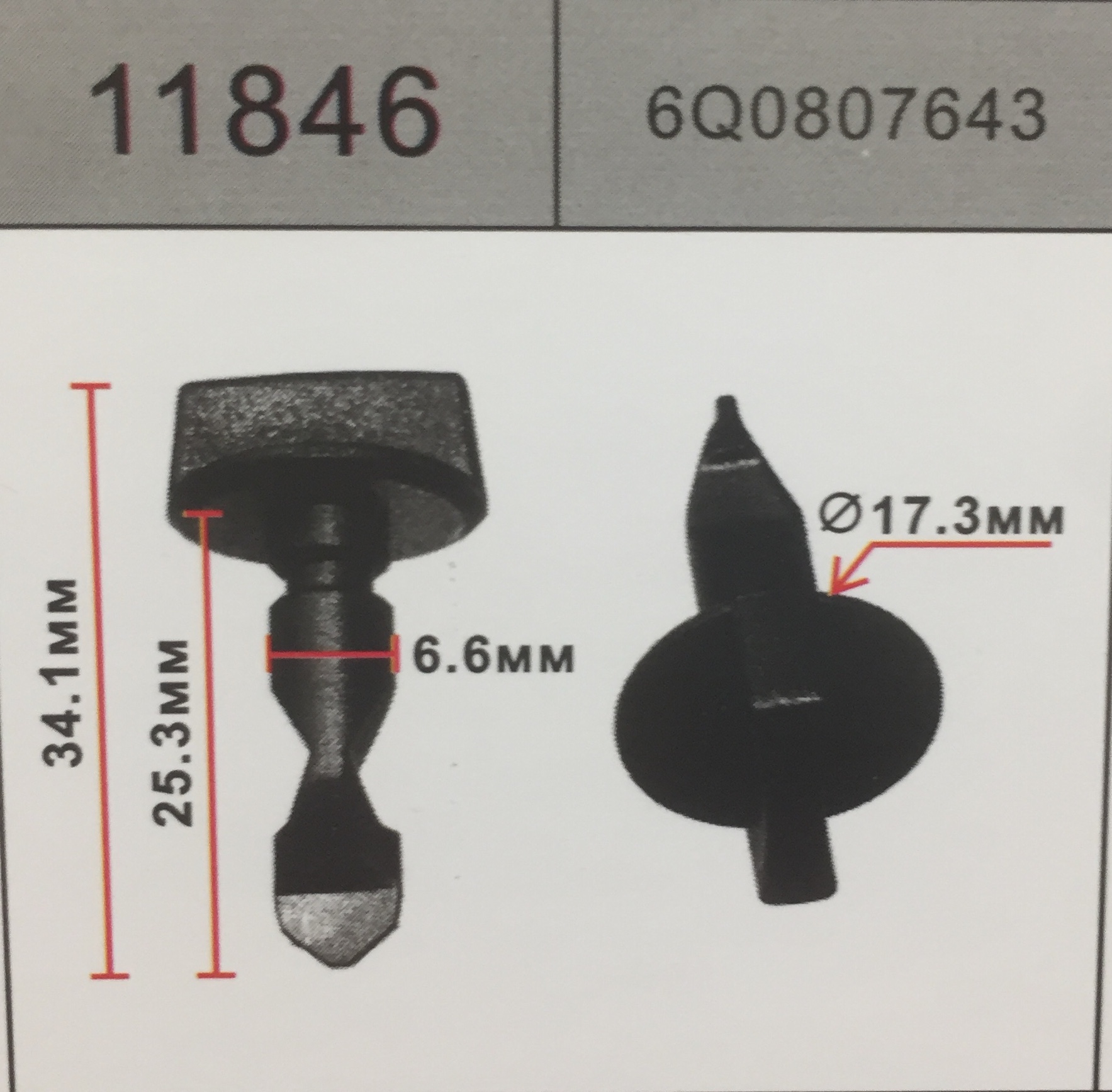 11846 аналог 6q0807643 клипса крепления декоративной накладки заднего бампера Volkswagen фольксваген/ауди/шкода/сеат