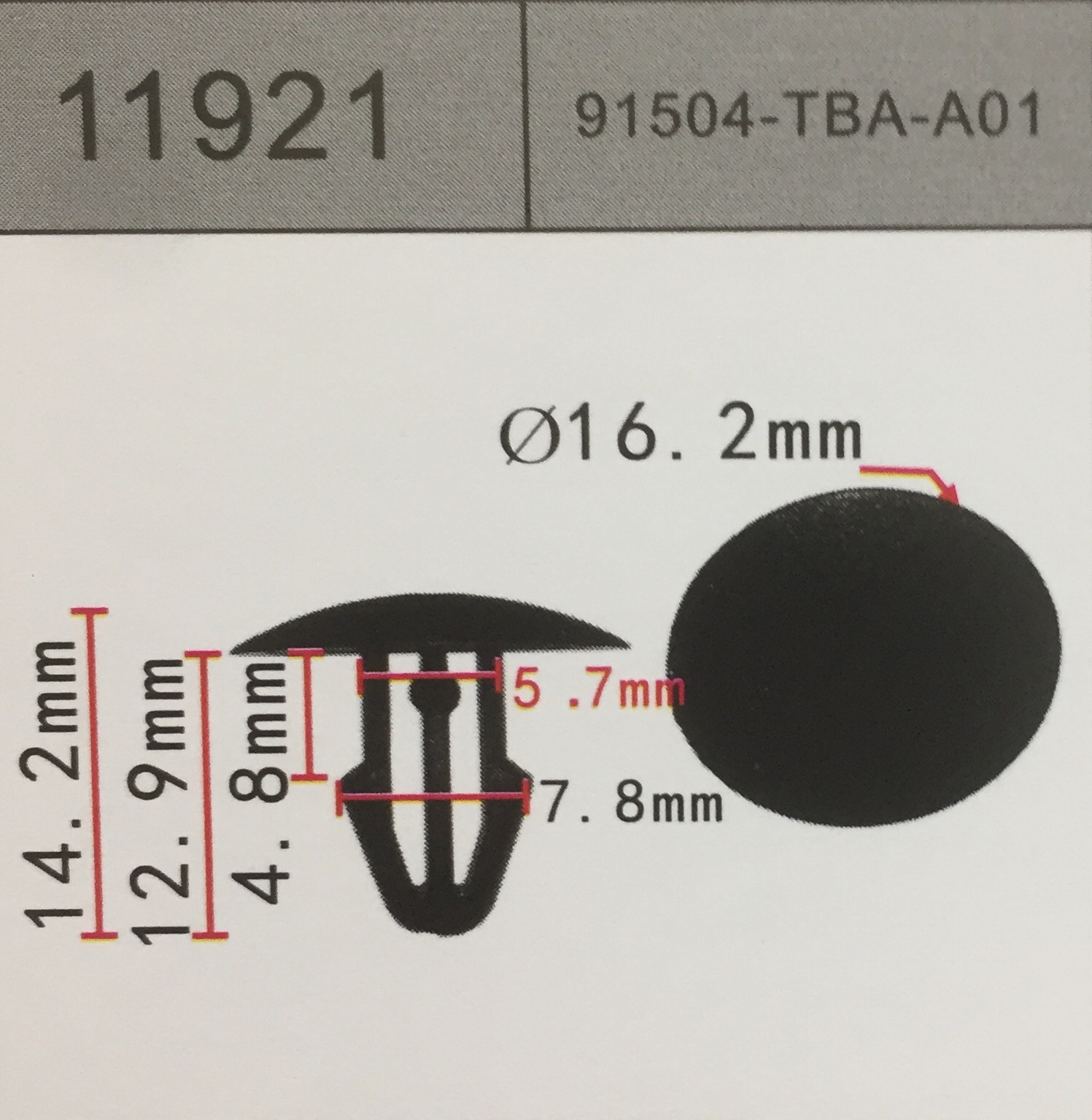 11921 аналог 91504-TBA-A01 клипса крепления утеплителя капота HONDA хонда/акура
