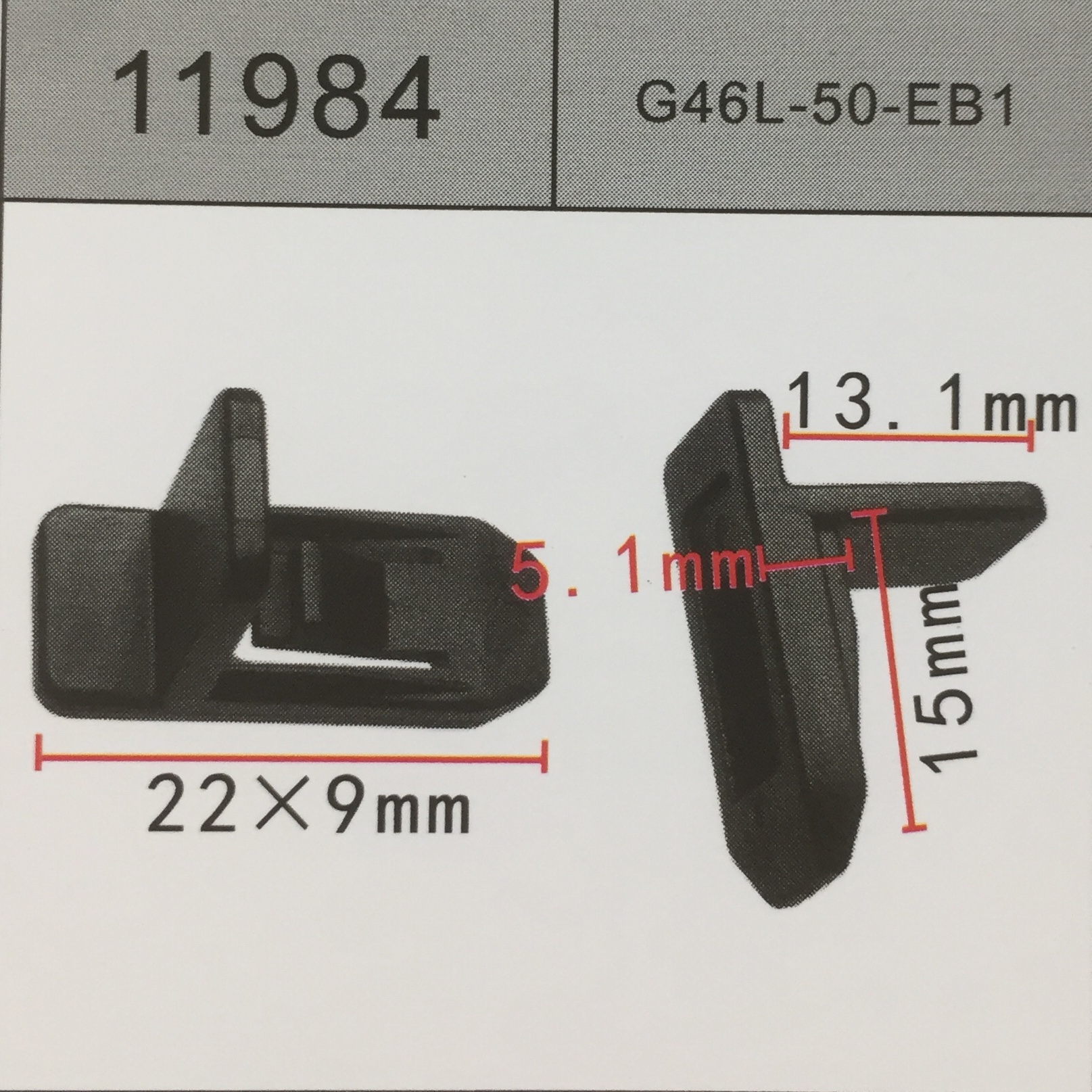 11984 аналог G46L-50-EB1 клипса Крепление решетки радиатора RENAULT/MAZDA/CITROEN рено/пежо/мазда/ситроен