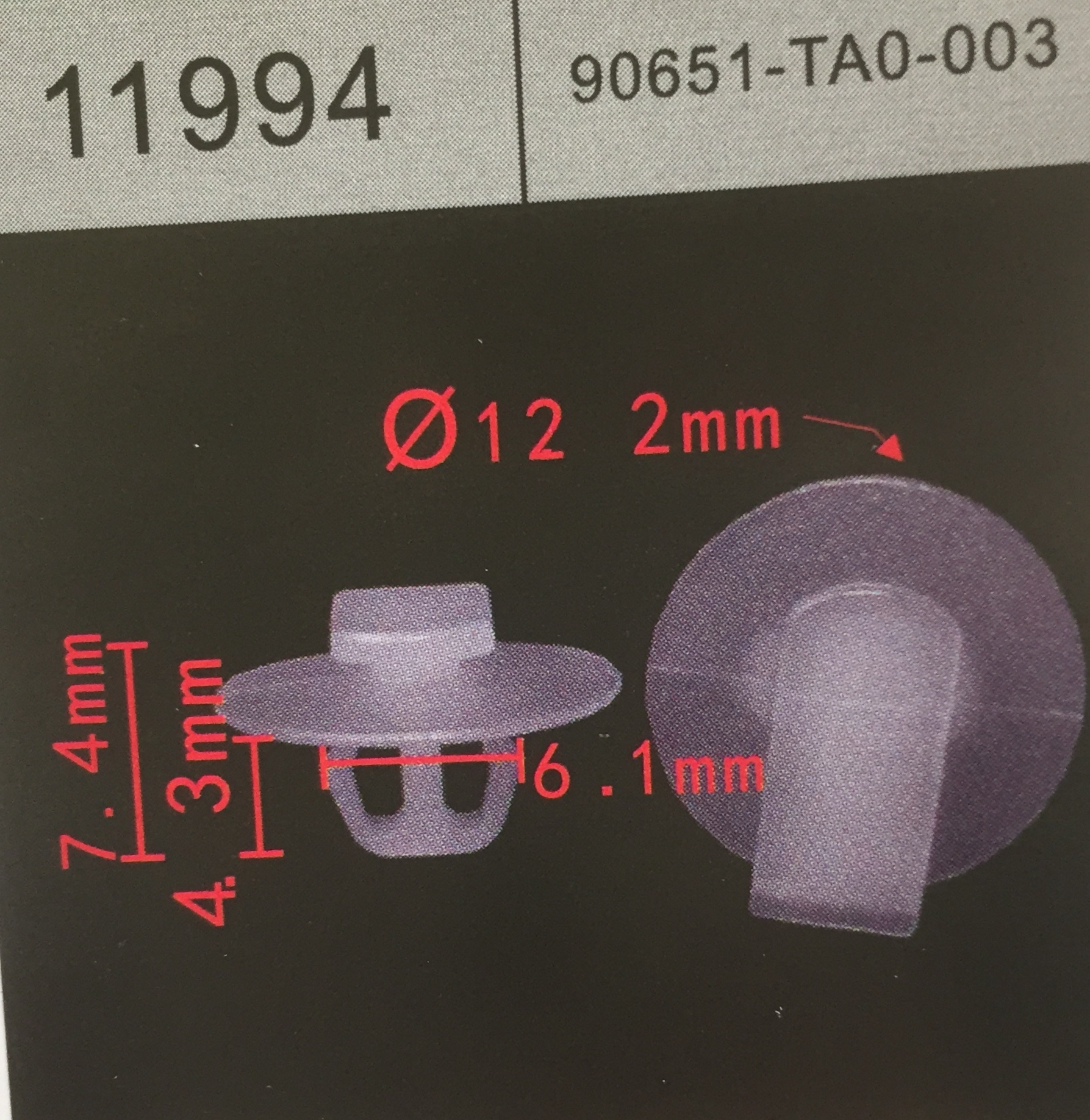 11994 аналог 90651-TA0-003 клипса крепления уплотнителя двери HONDA акура/хонда