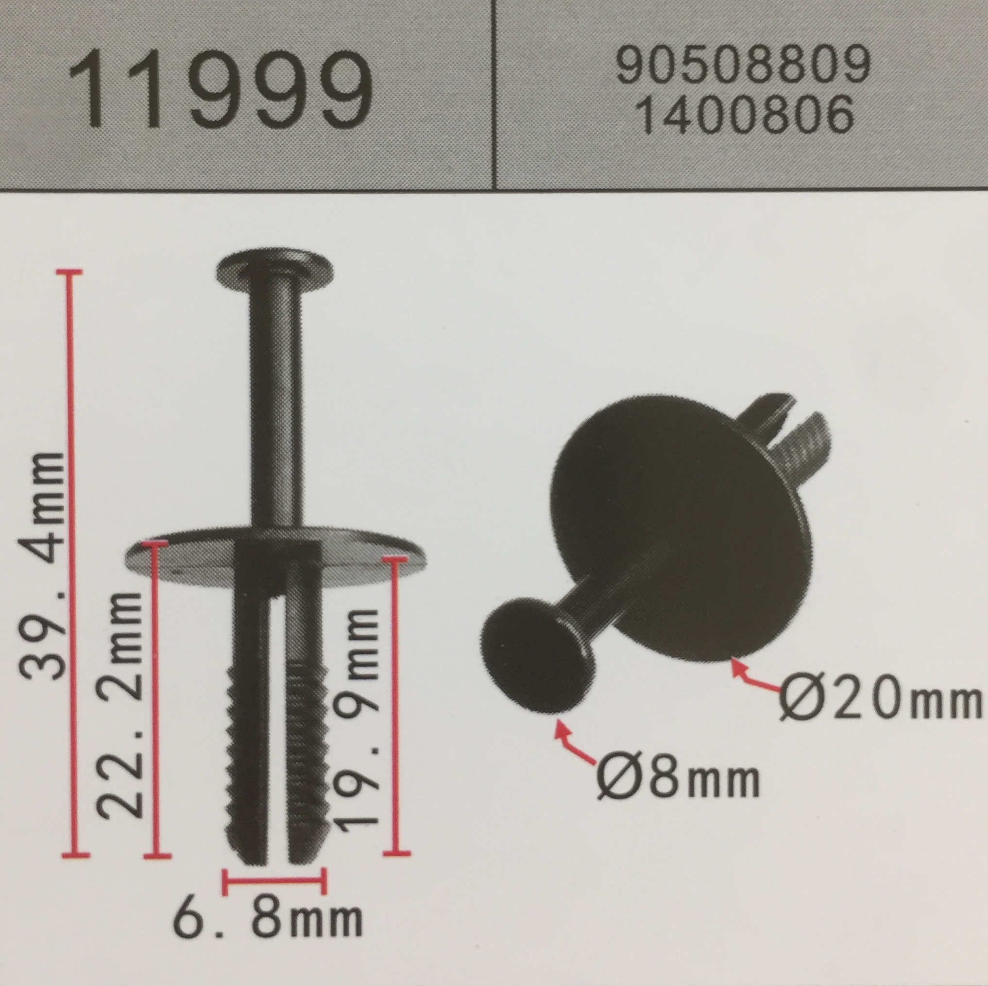 11999 аналог 90508809 клипса фиксатор крепления панели переднего бампера FORD форд