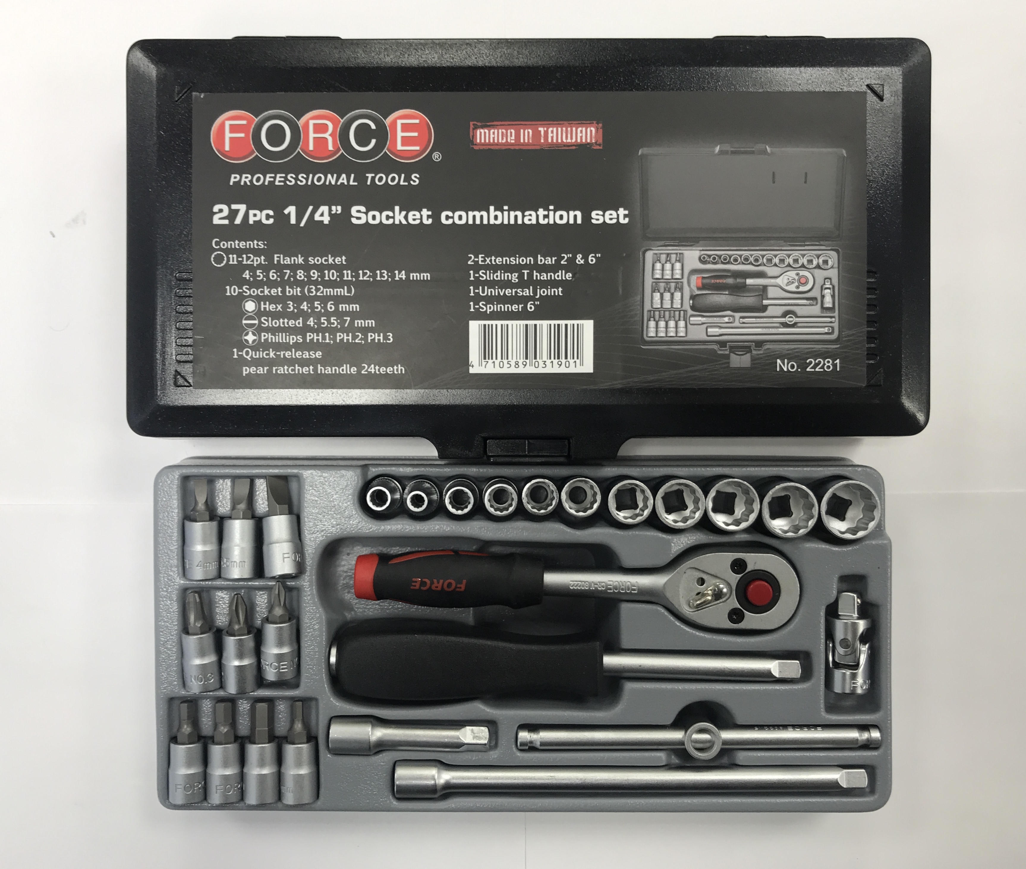 2281 Набор инструмента 1/4" 27предметов с 12-ти гран головкам FORCE 2281