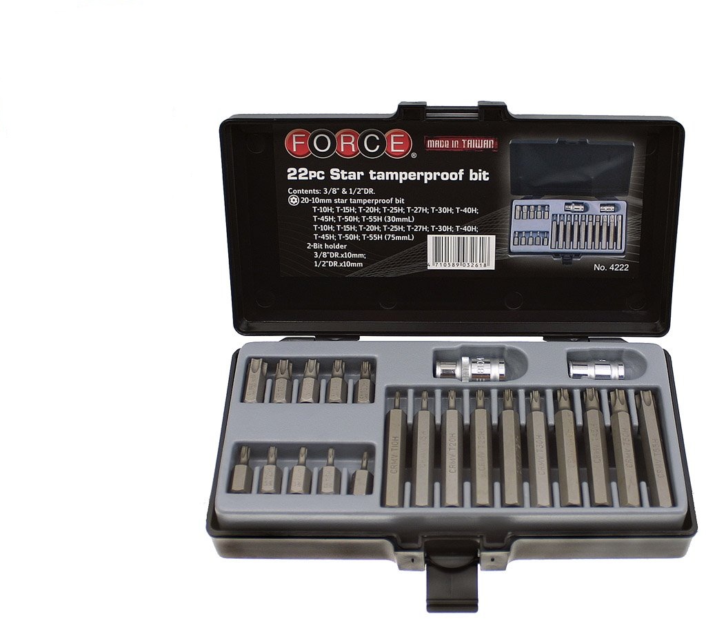 4222 1/2" 3/8" Набор бит Star Tamper с держат. 22пр. FORCE 4222