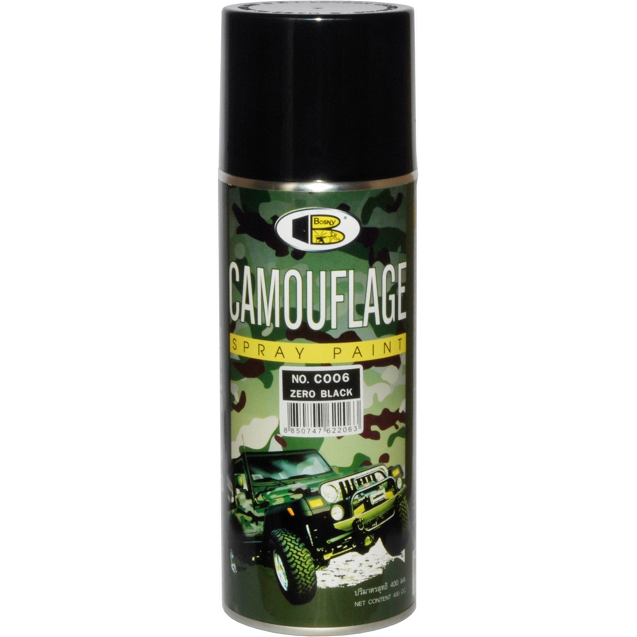 Краска АЭРО КАМУФЛЯЖНАЯ ЧЕРНАЯ СВЕТОПОГЛАЩАЮЩАЯ, 520мл, 300гр BOSNY C006