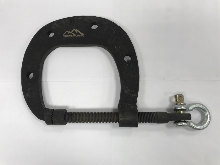 Струбцина с болтовой фиксацией и серьгой для создания тягового усилия с различных направлений. Максимальный раскрыв 150 мм.