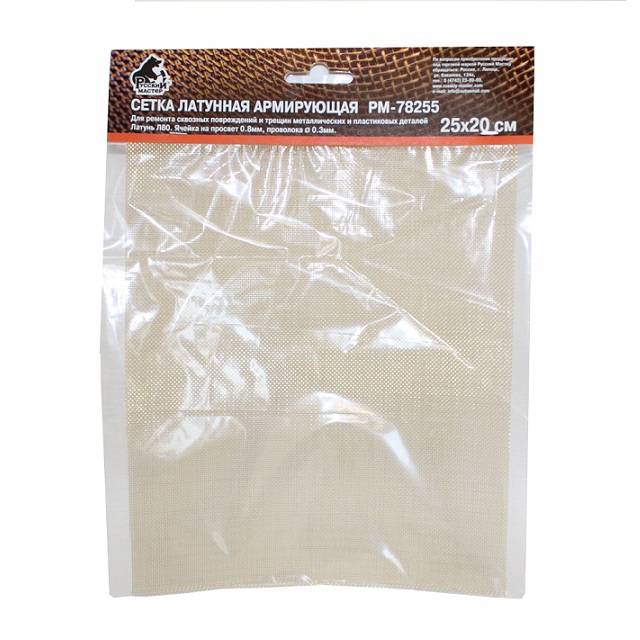 Сетка латунная армирующая для ремонта сквозных повреждений и трещин 20х25см. Русский Мастер РМ-78255